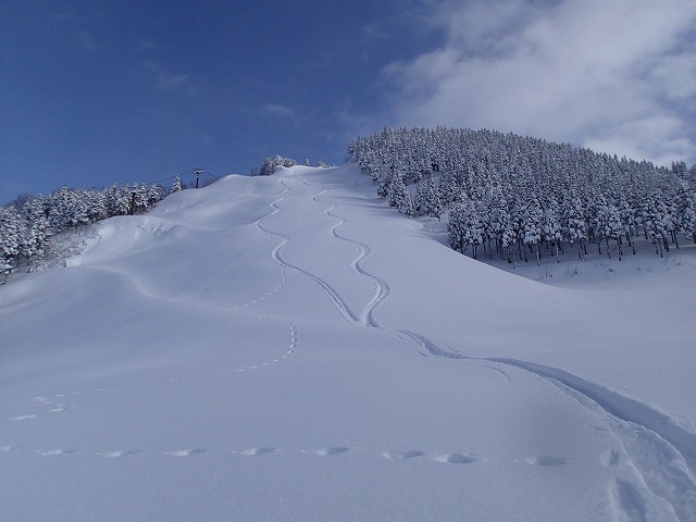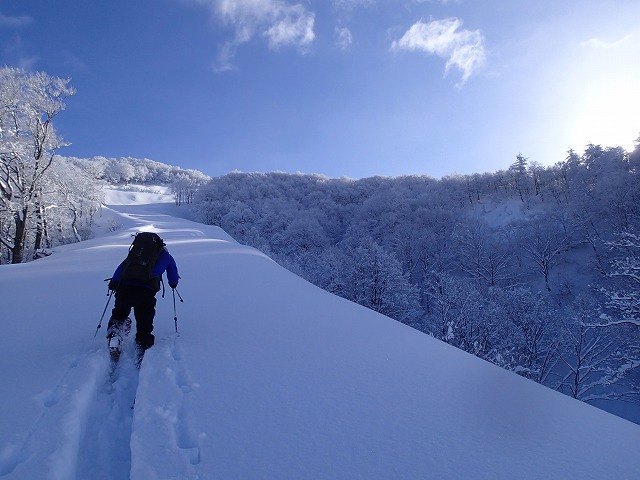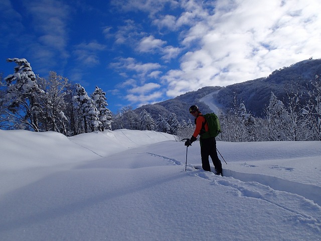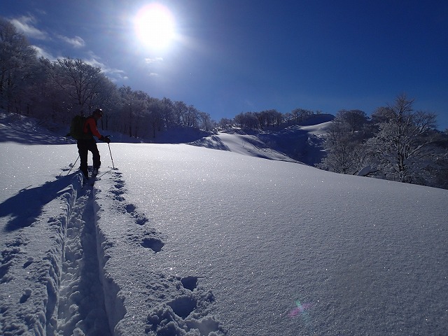 朝、そちらの方面に行かれた方のトレースがあり助けられましたが、スノーシューの跡が、でこぼこでスキーがうまく雪を捉えてくれません。