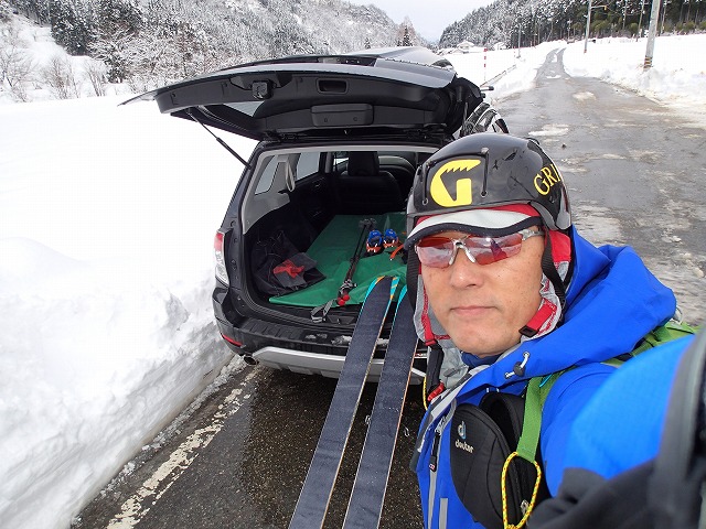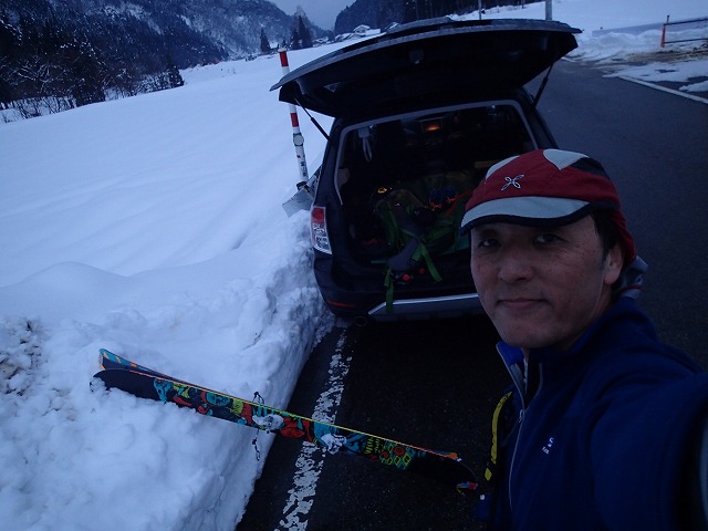 体重も少々増え気味です。ハイクと地元の雪の量を確かめに「片貝」方面に。