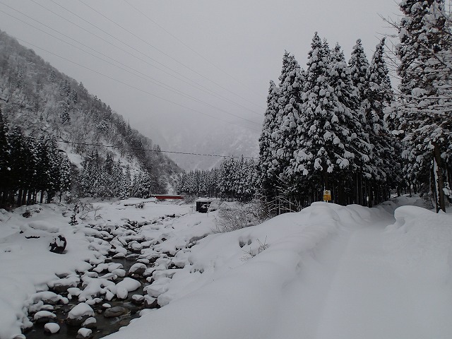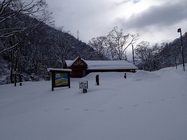 天狗蔵君の家の田んぼの所で道が雪でストップ。