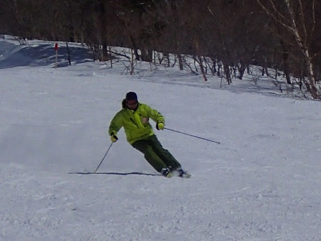前回できなかった「岡田利修デモ講習会」を8日土曜日に開催。素晴らしいゲレンデコンディションの中、彼のイメージするスキーについてそのエキスを伝授してもらうことができました。