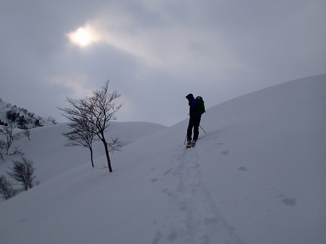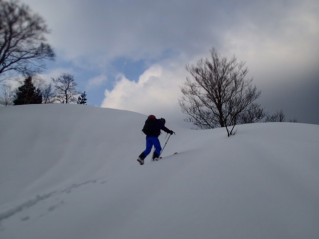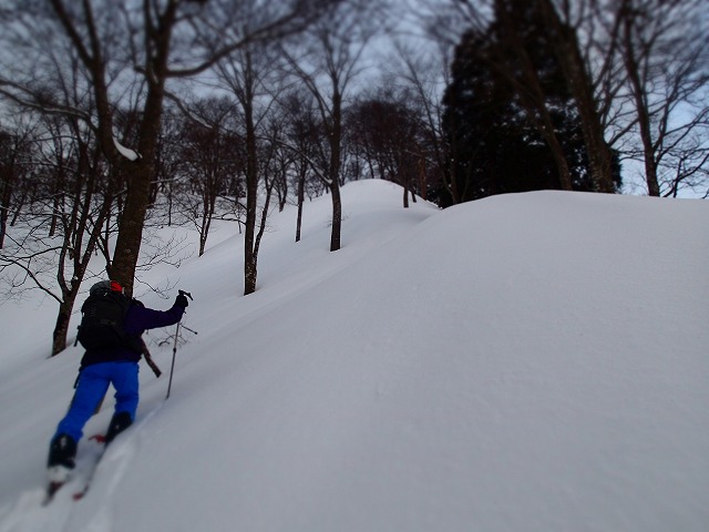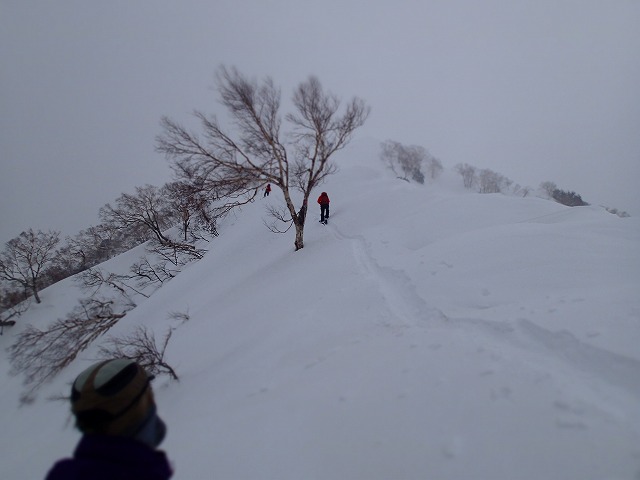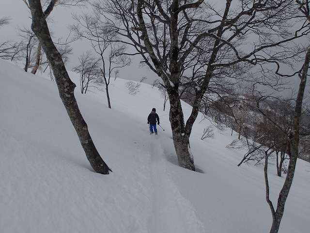 この尾根も、ジグをきりながら小ピークをうまく巻いてトレースを伸ばしていきます。