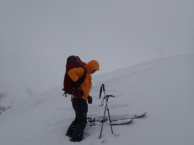強風の中、下降準備をして激パウハンターいざ出発です。