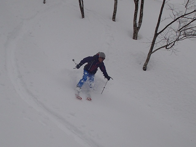 今回の激パウでの滑降。スキー技術がしっかりしているから満喫できるのだと考えます。