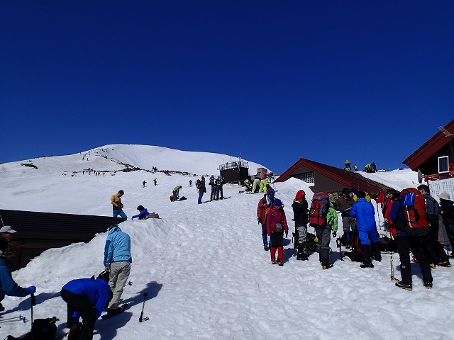 8:50 八方池山荘前出発。多くの登山者・BCスキーヤーがスタートしていきます。