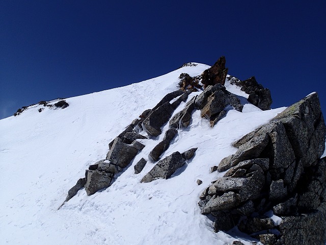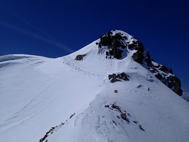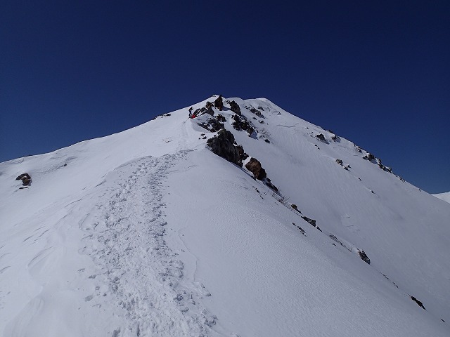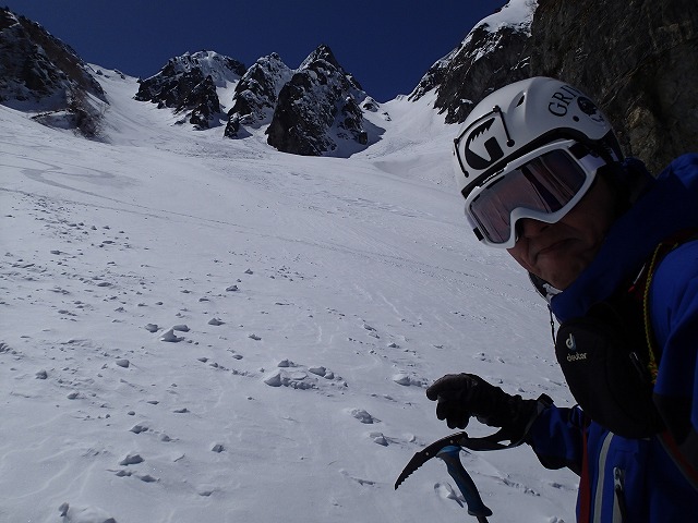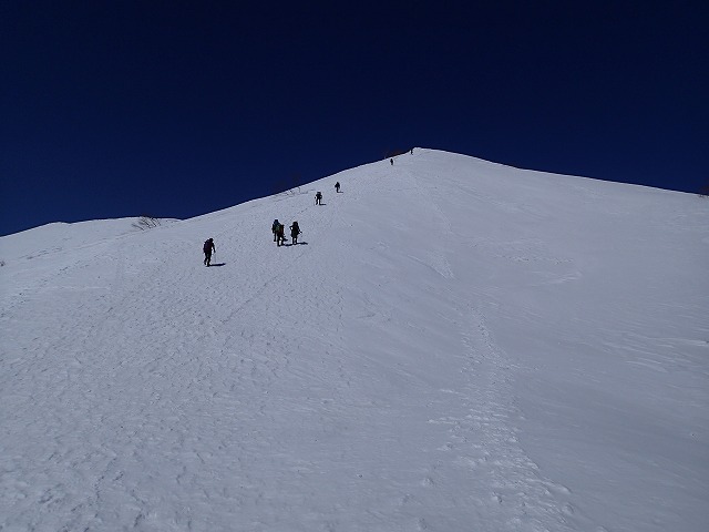 今日は、BCスキーヤーより登山者が多いようです。アイゼンが気持ちよくきいています。