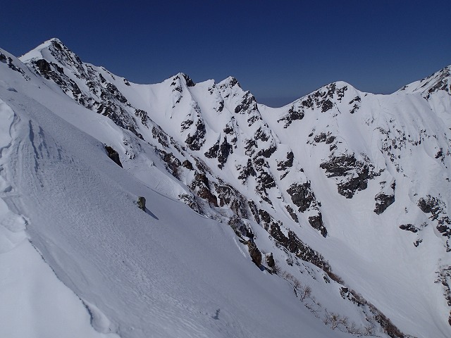 ともあれ、晴天に恵まれ素晴らしいDルンゼの斜面を制覇することができた、充実のBCスキーとなりました。