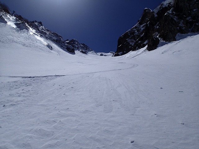 本日、唐松岳Dルンゼを滑ったのは、私の後に滑ったボーダー1人だけだったのでは。