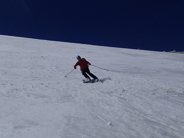 Red baron様、日曜日、ご指導ありがとうございました。天気も良く、景色も堪能できて、とても楽しかったです。道中は、いろいろと勉強させて頂き、感謝感謝の一日でした。体力、気力、技術、すべて見習いたいと思いました。ハイクアップやスキーのアドバイスも多々頂き、うれしかったです。私はまだまだ駆け出しですが、大自然とスキーを愛する者の仲間として、これからもよろしくお願いします。また、本ブログ中のRed baron様の滑走写真を一枚頂きますので、お許しください。私どもの会のブログに使わせていただきたくお願いいたします。これに懲りずにこれからも理想と夢を私に熱く語ってくださいね。聞くのを楽しみにしていますので。取り急ぎ、お礼まで。