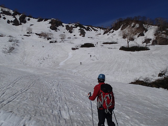 ここは、定番コースです。多くのBCスキーヤーが鑓の山頂に集まっていました。大出原から鑓ヶ岳にハイクする者もたくさんいます。この領域はBCスキー(山スキー)において基本となりそうです。