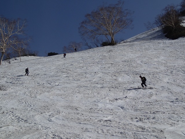 今回、大出原の滑降だったわけですが、斜度・距離・安全面において一番の斜面だと思います。