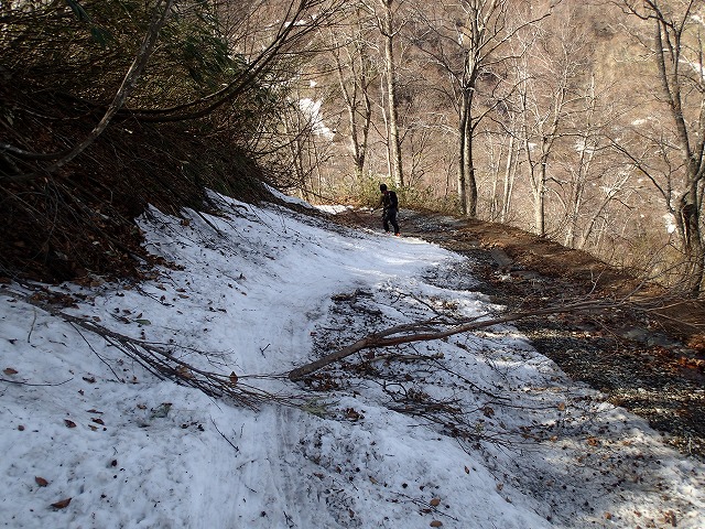 14:20 小日向のコルへのハイクアップ場所。まだまだ元気な「薬剤師さん」