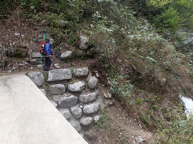 今年は、全く雪がありません。最終堰堤を越した後も、藪こぎをして雪のある所まで行かなければなりません。