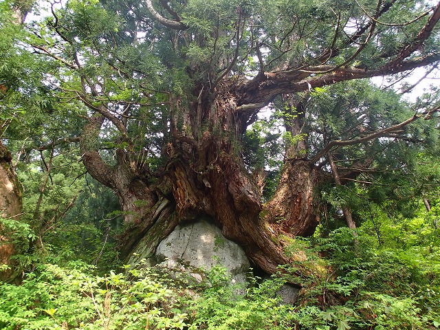「洞杉」を見学。石を抱えて生えています。その生命力の強さにびっくり。