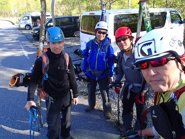 9:35 トラバース開始。昨年も来ている天狗蔵君が、オリジナルトラバースラインを進みます。