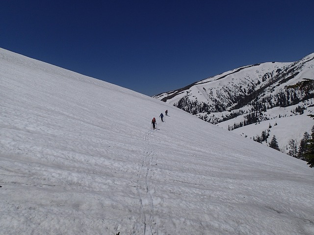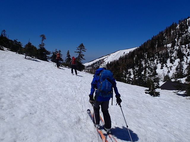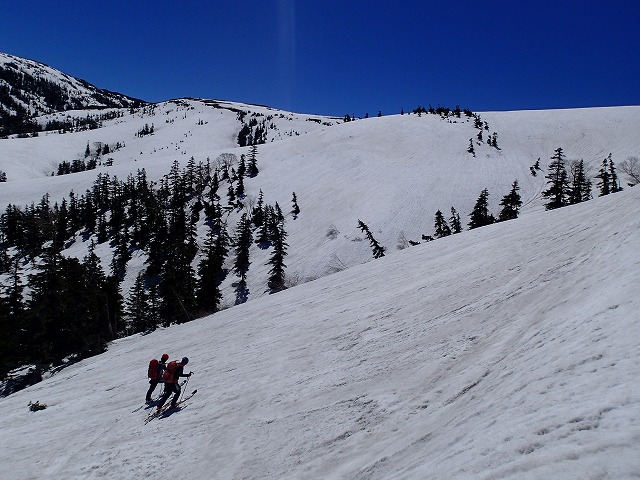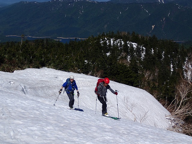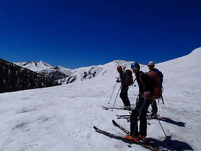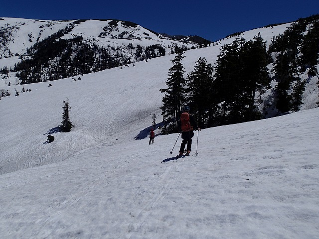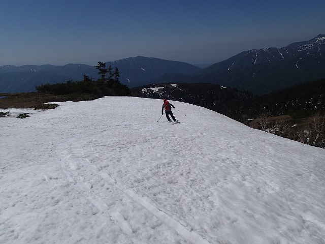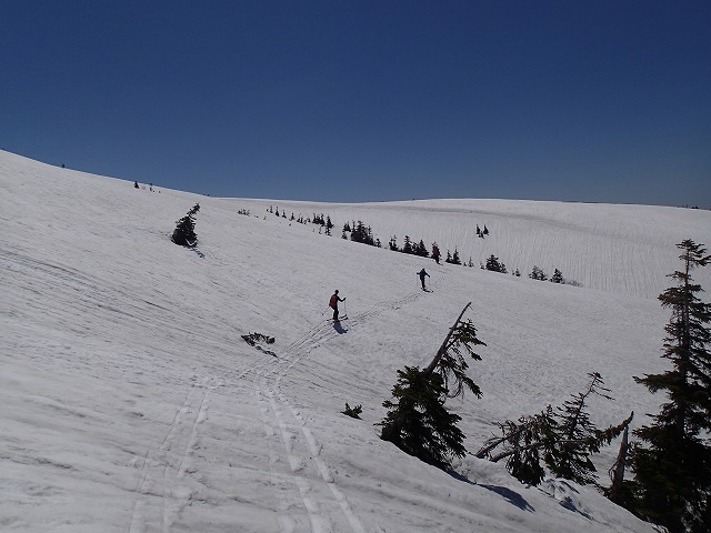 快適な滑降とはいきませんが、シーズン最後のスキーを味わいながら薬師峠に向かいます。