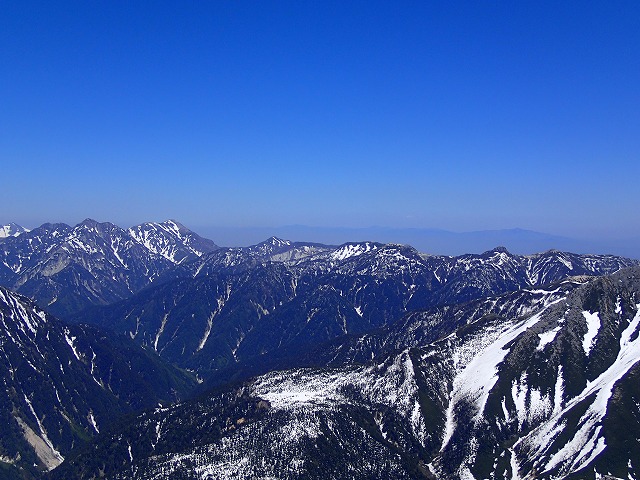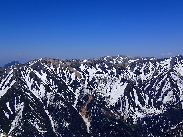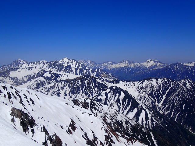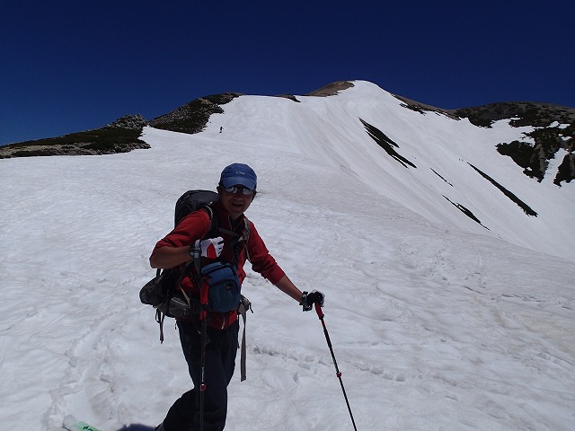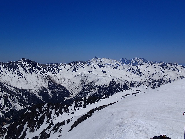 気温高く暑い日でしたが眺望抜群で残雪縞模様の赤牛岳が