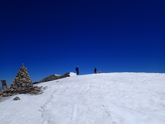ご挨拶をして山頂へ。快調なハイクが進み避難小屋に到着。ここからも雪が山頂まで繋がっています。