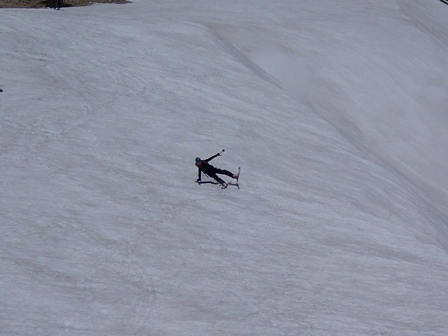 お昼を過ぎるとやはり雪が緩んできます。ストップがかかる最悪の雪質になってしまいました。(スキーの前に乗らないことを注意)