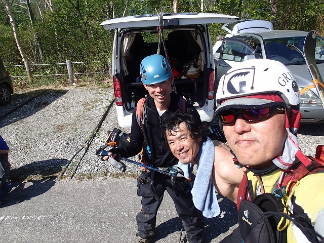 お疲れ様でした。先に到着の天狗蔵君は着替え中。週末山紀行さんはジュースを買いに。