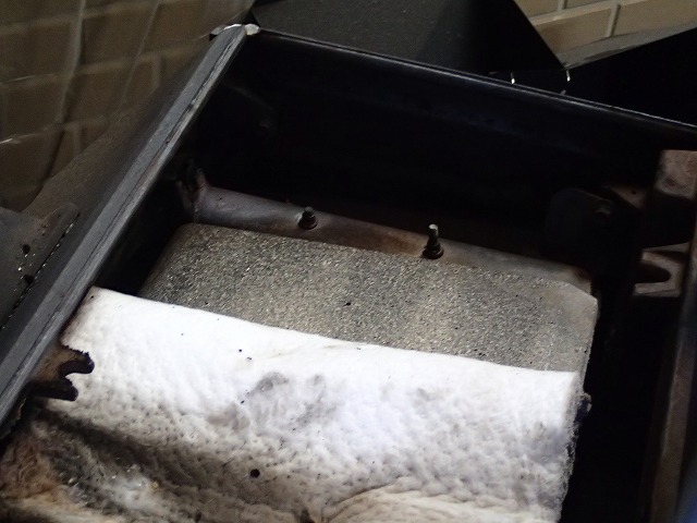 ストーブ上部。上にある石綿の灰は、掃除機では吸い取りません。石綿は横にずらしながら。