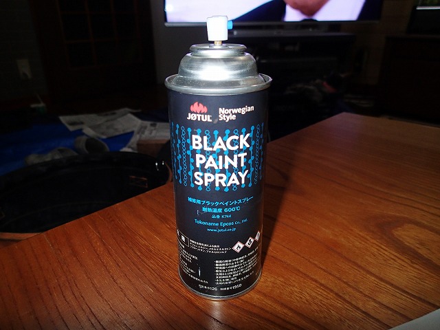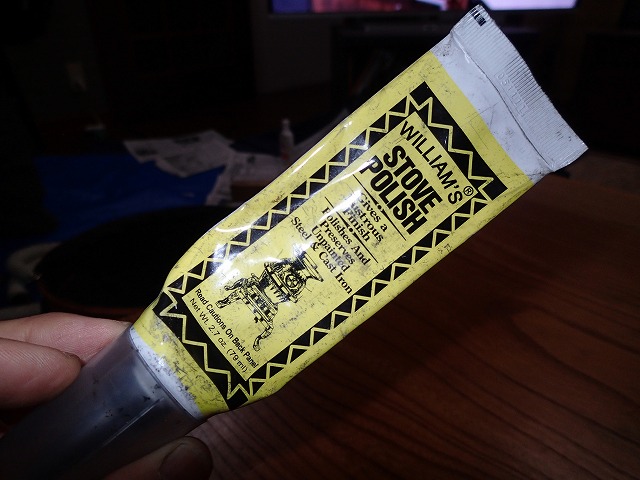 表面の茶色く錆びた部分は、ストーブポリッシャーできれいにします。その後にスプレー。