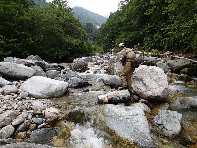 大きな石がごろごろした渓流は、岩魚が育ちやすい環境だと思われます。