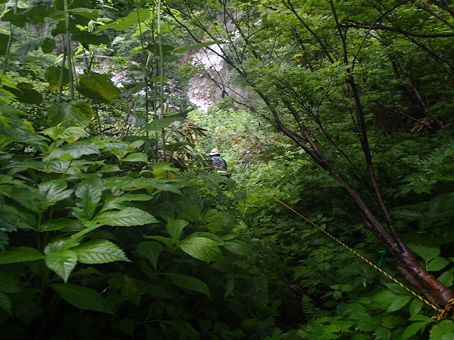 約1600m地点で小休止。ここから池ノ谷めがけて下ります。ところどころにロープも張ってあります。