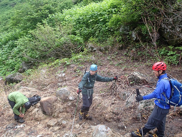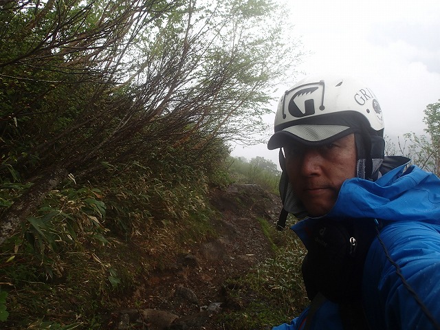 登山道といっても草木が生い茂っているところが至る所に。昨日の雨でびしょびしょになりながら進みます。