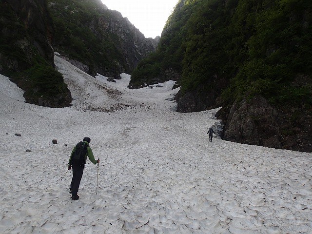 三ノ窓に向かって真っすぐ雪渓が伸びています。ここからまだまだ1時間はかかるのでしょうか。