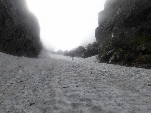 雪渓は、硬く絞まってハイクし易く、徐々に体力も戻ってきました。アミノバイタル効果もでたようです。