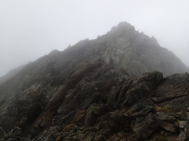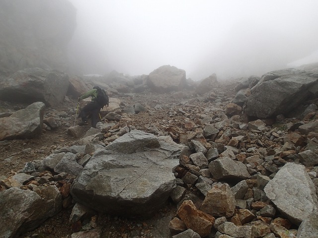 山頂もガスが抜けていないようです。剣岳に来て初めて景色を楽しむことができないようです。