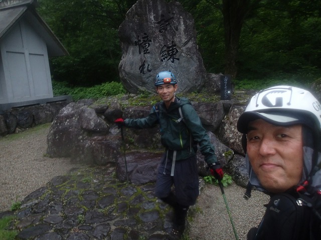 17:31 馬場島到着です。ヘロヘロの二人を天狗蔵君に撮ってもらいました。身体はボロボロですが、心は満足感でいっぱいです。
