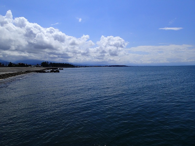 海は、天気がいいのですが、山は雲がかかり天候が悪そうでした。