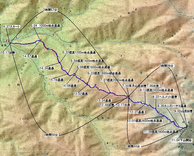 この登りも、ガイドブックでは、3時間20分となっています。ここを2時間09分でクリアーこれも自己新です。