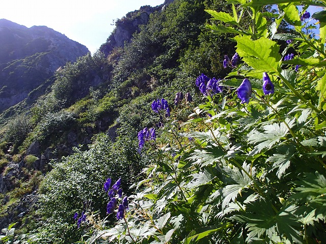 見事に咲いているのが「タカネトリカブト」毒々しい紫色です。
