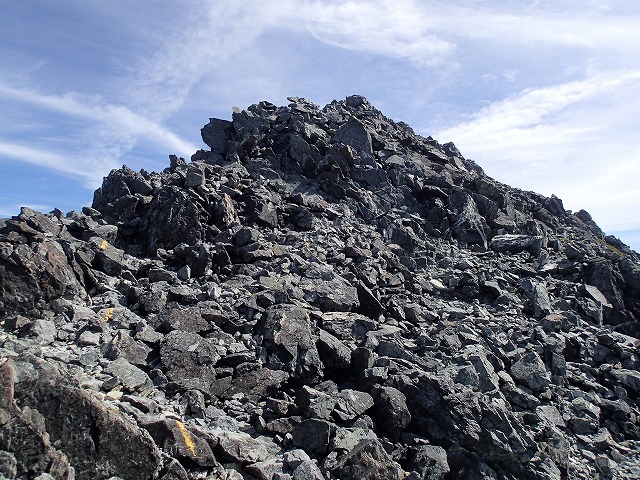 山頂近くも見えてきます。ここから見ると岩の塊です。スリル満点の登りとなります。