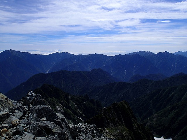 剱沢方面。槍の先端も見えます。剱の頂上はこれでなくては。