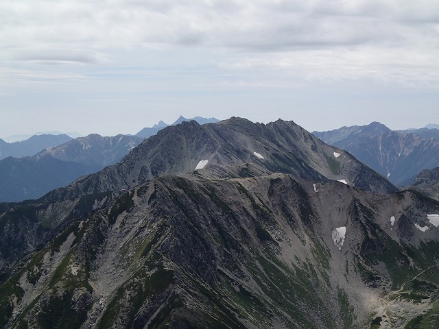 雄山三山と手前が別山。奥に槍の穂先。