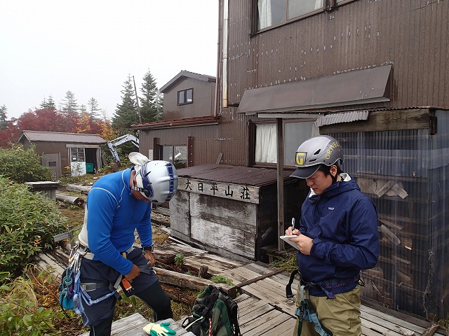 10:30 大日平小屋に到着 食事を済ませ 準備に取り掛かります。記録をしっかりとる記者さん