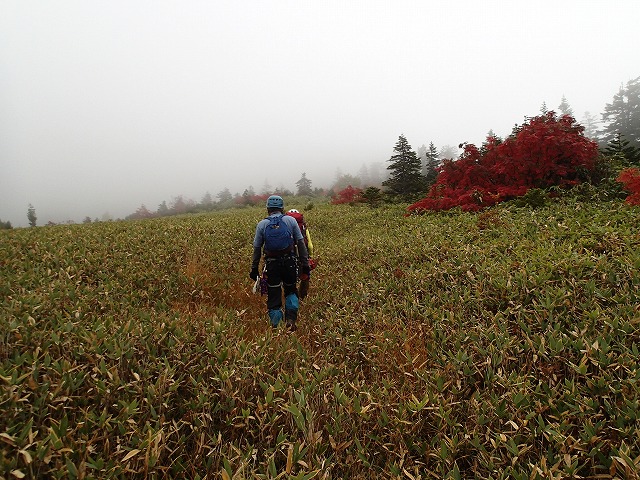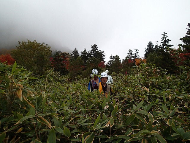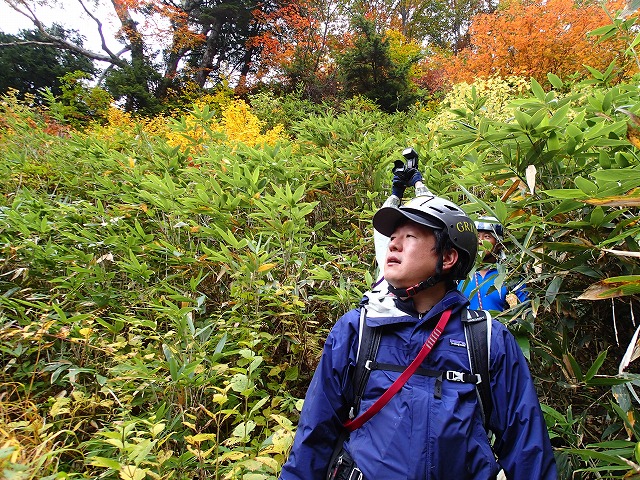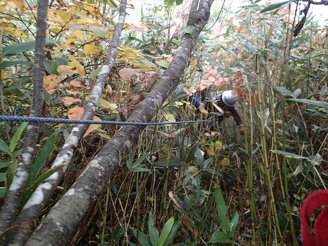 無事、急斜面笹藪をクリアー。(私がサポート役で参加した甲斐があったようです。)