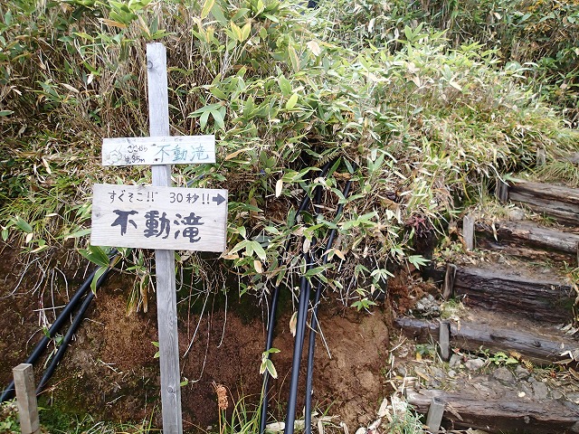 不動滝を見に行きます。小屋のすぐ裏が展望台。