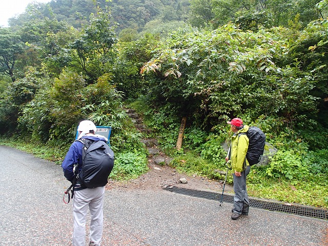 7:46 称名駐車場を出発。会長さんを先頭にいつもよりゆっくりとしたペースでスタートです。