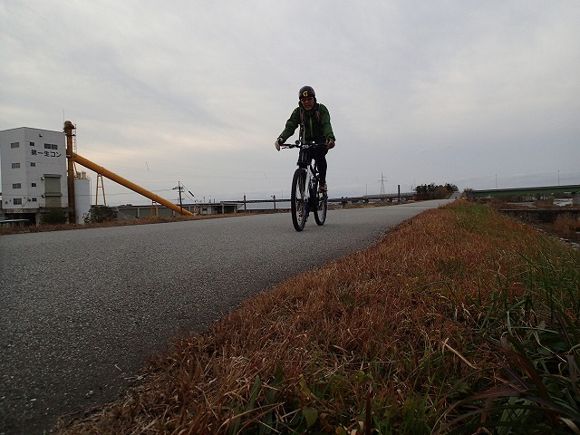 堤防沿いは、車の往来も少なく安全です。途中4名のロードバイクとすれ違いました。多くの自転車愛好家がコースにしているようです。