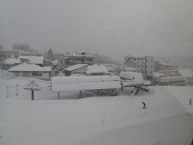そんなときの栂池高原です。富山は湿った雪が降っていますが、山の向こう側は乾燥した雪が降っているはずです。