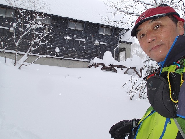 ハイクしてきたトレース沿いに滑降し、無事成城大小屋前に戻ってきました。