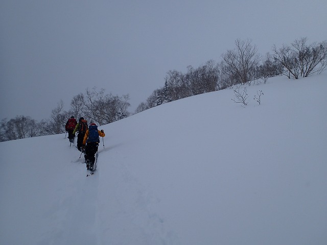 まだまだ樹木や小枝もたくさん出ていますので、今回はラッセルと寒冷を体験するプチBCスキーとなりました。