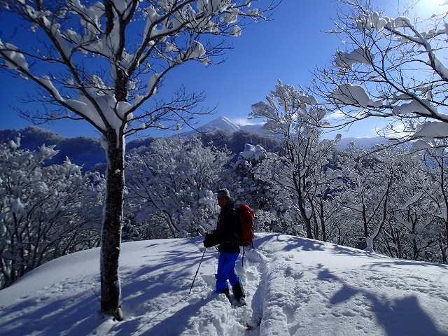 「大品山から独標まで行って、大斜面滑りましょう。トレースがあれば桑崎まで行きましょう。」