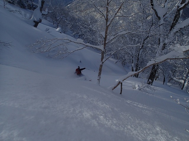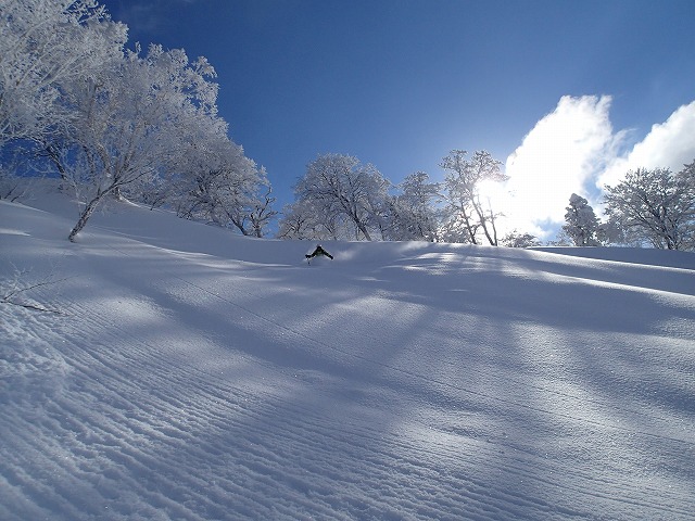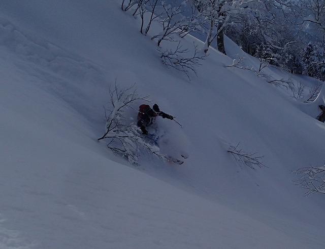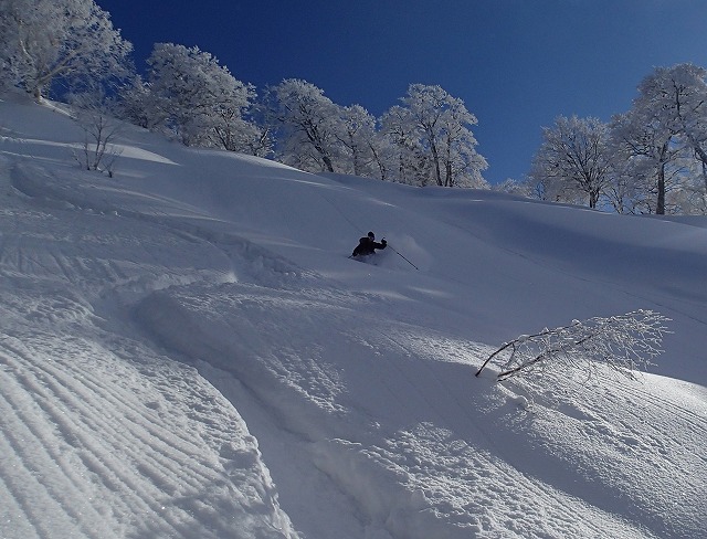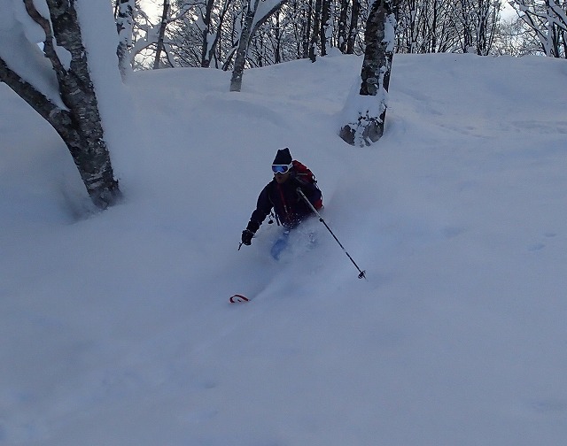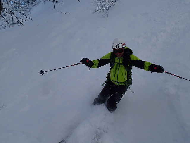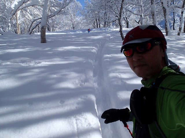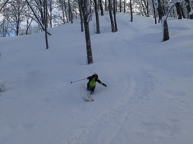 独標までトレースがないこともあり、手前で終了。今日は激パウ滑降を楽しむことにしました。