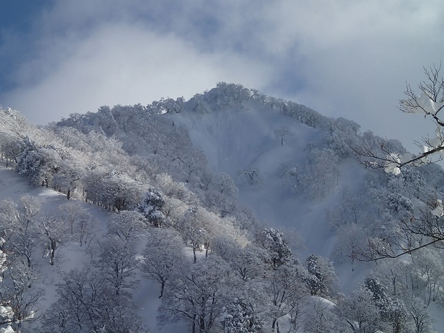 独標。昨年この斜面を横切ろうとしたときに、雪崩が発生し引き返した場所です。こう見るとやはり傾斜もきつく危ない場所のようです。