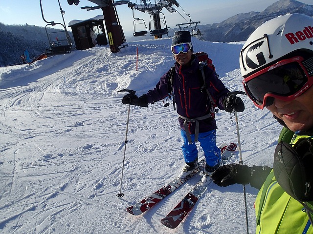 14:44 大品山に戻ってきました。エネルギーを入れ滑降準備です。ここからも楽しく滑ることができます。